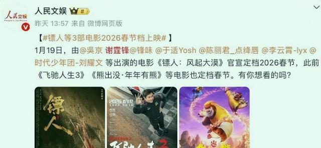 在短短不到24小时里,谢霆锋接连被央视网文娱和人民文娱两家重磅官媒点名表扬,重点推介他主演的新作《镖人》。