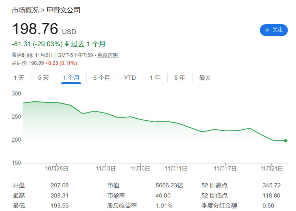 在AI支出的另一端,那些大举投资的公司也面临着股价压力。自10月29日发布财报以来,由于投资者对其激进的资本支出计划感到担忧,Meta的股价已下跌21%,微软也因类似原因下跌了13%。