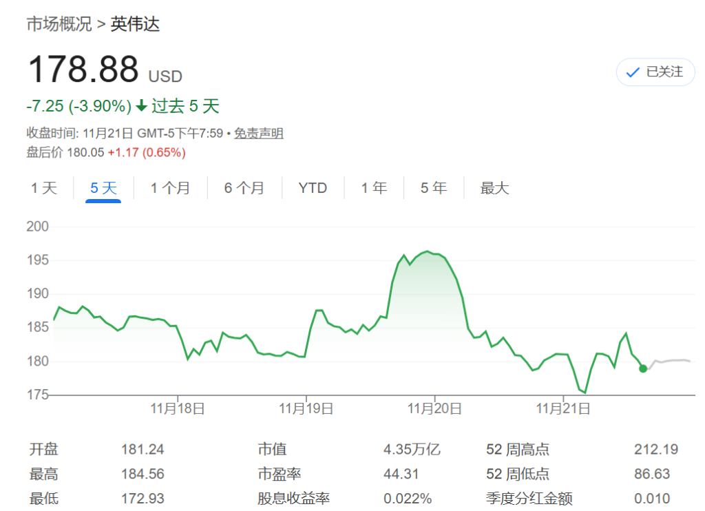 上周,英伟达在公布强劲财报后,其股价在上周四一度上涨超过5%,但随后迅速逆转,收盘下跌3.2%。这种过山车式的行情迅速传导至整个市场,标普500指数和纳斯达克100指数同样冲高回落,最终收跌。